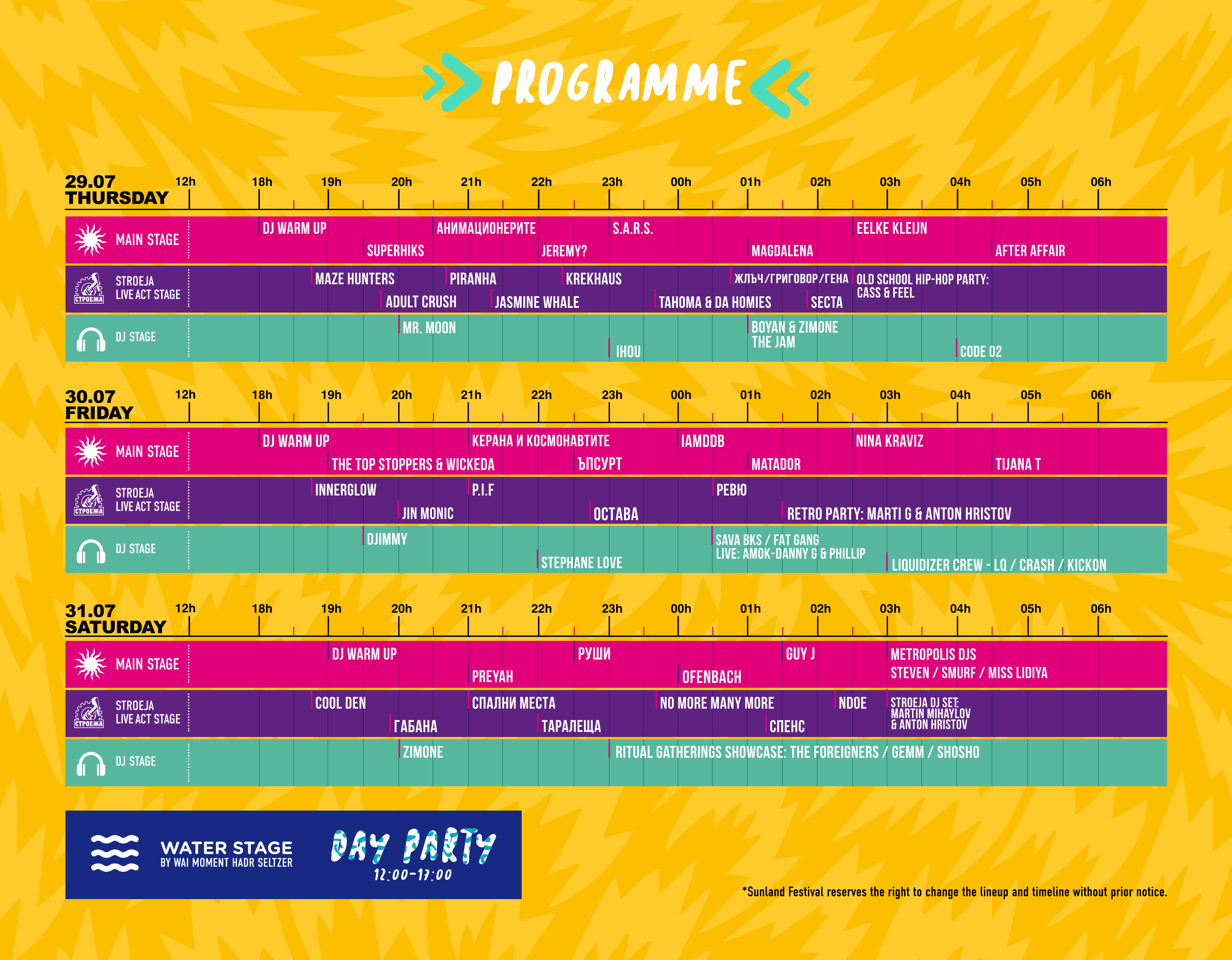Само билети с баркод, закупени чрез epaygo.bg и bilet.bg, касите на EasyPay и партньорски билети дават достъп до фестивала. Билетът (физически или е-билет) при никакви обстоятелства не осигурява достъп до фиксирано/ резервирано място на фестивала или в къмпинга. Подправката на билети (физически или е-билет) или гривни подлежи на наказателно преследване. Деца до 9 годишна възраст се допускат безплатно на фестивала в присъствието на родител. Всеки билет има уникален баркод, който е валиден само веднъж. Лицето, закупило билета, носи отговорност за използването на билета. Никога не купувайте билет от непознат, организацията не дава гаранция за валидността на билета в случай на препродажба. Валидно доказателство за самоличността на купувача следва да бъде представено при поискване. Sunland не поема отговорност в случай на загуба, кражба или злоупотреба с билети.